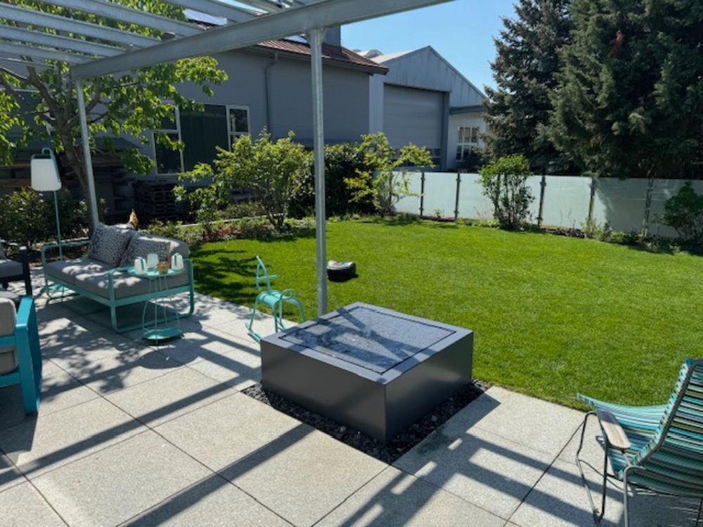 Esistono diversi modi per aggiungere acqua al giardino. Ad esempio, potete optare per un laghetto di grandi dimensioni come elemento di spicco del vostro giardino. Per un look elegante e moderno, potete utilizzare una bordura in acciaio corten intorno al laghetto. Gli elementi d'acqua più piccoli, come i tavoli d'acqua, sono un'altra grande opzione che potete incorporare in modo discreto nel vostro giardino.