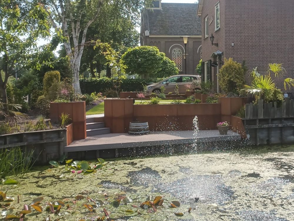 Un giardino sull'acqua ha qualcosa di speciale. Il dolce suono dell'acqua che scorre e il verde intorno creano un'atmosfera tranquilla e unica. I prodotti da giardino in acciaio corten aggiungono un accento deciso al vostro giardino, integrandosi perfettamente con la natura circostante.