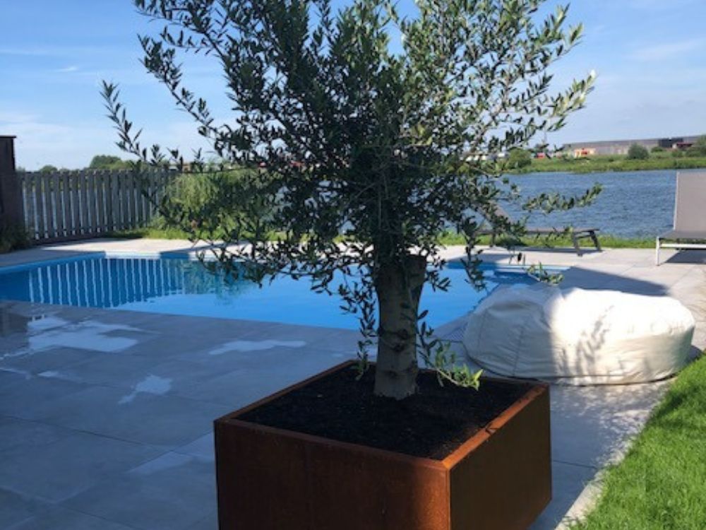 Un'aggiunta speciale è un albero di ulivo in un grande vaso. Soprattutto in combinazione con una piscina, questo porta immediatamente un'atmosfera mediterranea nel vostro giardino. Il vaso è posizionato su ruote e può essere facilmente spostato. Volete conoscere il modo migliore per prendersi cura di un ulivo? Leggete il nostro blog:"L'ulivo in una grande fioriera".