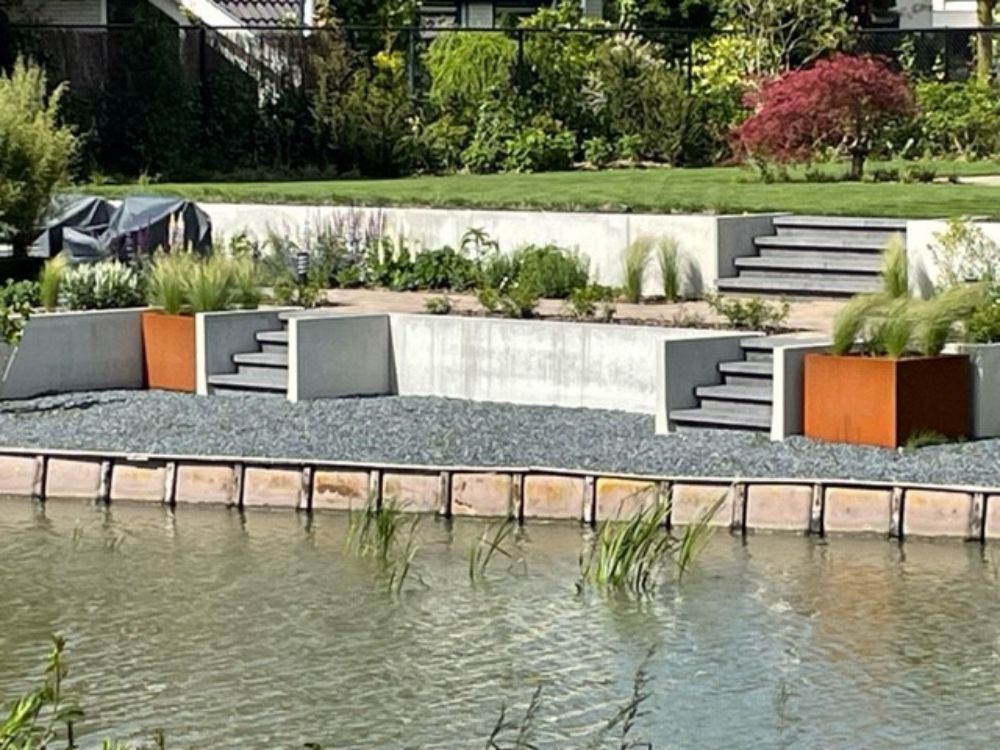 Vivete vicino a un canale, un lago o uno stagno? Se sì, l'acqua e la natura circostante creano un'atmosfera tranquilla. Con i prodotti in acciaio corten, potete dare al vostro giardino sull'acqua un accento fresco e moderno. Il caldo colore ruggine di questo materiale crea un piacevole contrasto con l'acqua fresca e il verde del giardino.