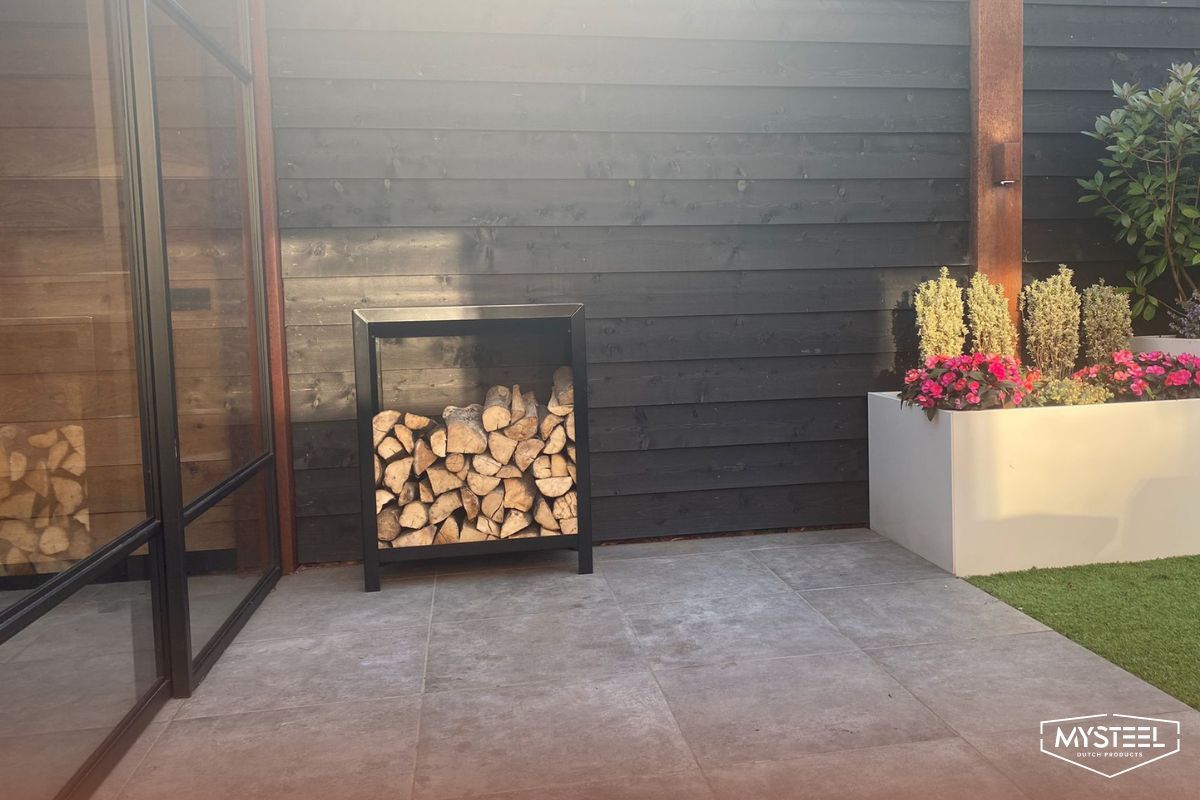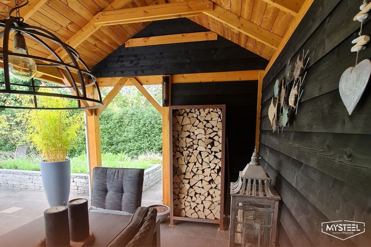 - Assicuratevi anche che la parte posteriore del magazzino non sia completamente chiusa. In questo modo l'aria potrà circolare meglio. I magazzini per legna in acciaio corten e i magazzini per legna in acciaio di MySteel, ad esempio, sono aperti sul retro.