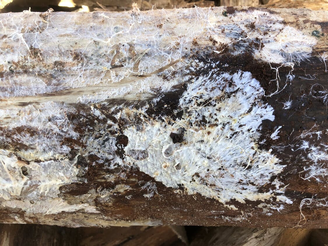 Esempio di muffa sulla legna da ardere. Se vedete muffe evidenti sulla legna da ardere, buttatela via. Questo perché la legna non è adatta alla combustione. Immagine tratta da Mapleseed.farm.