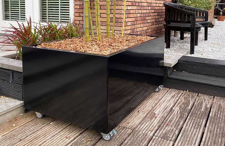 3. Fioriera in acciaio verniciato a polvere come divisorio nel giardino moderno