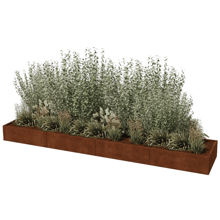 Questa fioriera in acciaio è modulare e viene venduta sotto forma di kit da assemblare. La fioriera è costituita da pannelli separati ed elementi angolari. Le fioriere sono collegabili tra di loro senza elementi di fissaggio visibili. Grazie al nostro sistema modulare, è anche possibile creare fioriere di dimensioni molto grandi. Gli elementi angolari consentono di creare fioriere di forma esclusiva che nessun'altra ditta concorrente è in grado di fornire. Per maggiori informazioni, cfr. il manuale.