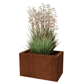 Il bordo superiore con doppia ripiegatura conferisce alla fioriera un aspetto solido e senza tempo. Il colore ruggine conferisce un aspetto caldo rendendo queste fioriere adatte a giardini moderni e classici. Lo spessore del materiale dipende dall'altezza. Le fioriere fino ad un'altezza di 60 cm hanno uno spessore di 1,5 mm. A partire da un'altezza di 80 cm, il materiale ha uno spessore di 2 mm. Le numerose verifiche effettuate hanno dimostrato che questi spessori sono sufficienti per le fioriere.