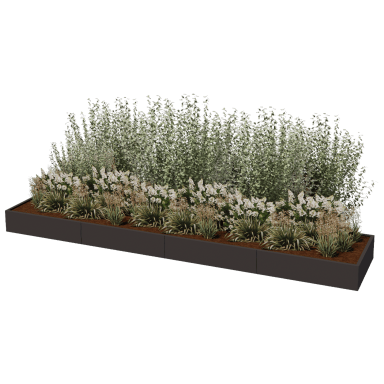 Questa fioriera è una fioriera modulare in acciaio fornita in kit. La fioriera è costruita da pannelli e pezzi angolari separati. Le fioriere possono essere collegate in modo completamente cieco. Non ci sono elementi di fissaggio in vista. Grazie al nostro sistema modulare, sono possibili anche dimensioni molto grandi. Grazie all'utilizzo di pezzi angolari, è possibile ottenere forme uniche che non sono disponibili altrove come standard. Per ulteriori informazioni, consultare il manuale.
