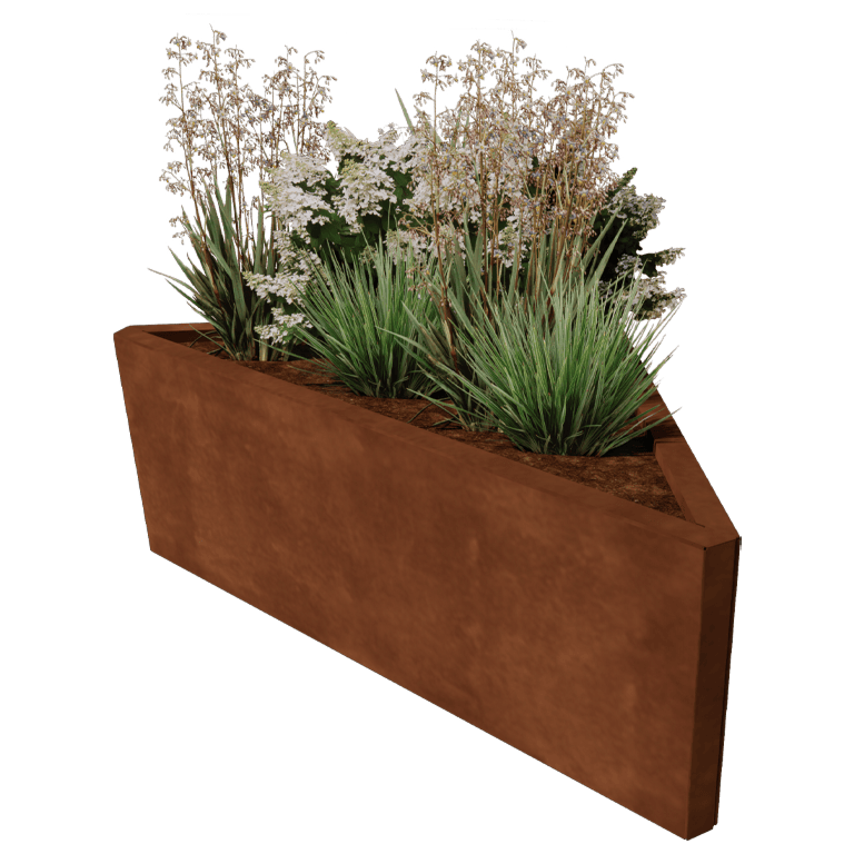 Il tipo Alaska è una fioriera triangolare. La fioriera ha un aspetto robusto e una bella finitura dei bordi. La forma triangolare dell'Alaska è applicabile a tutti i tipi di giardino. Grazie alla forma triangolare, l'Alaska è facile da collocare in un angolo. Grazie al nostro sistema modulare, i contenitori sono molto facili da assemblare.