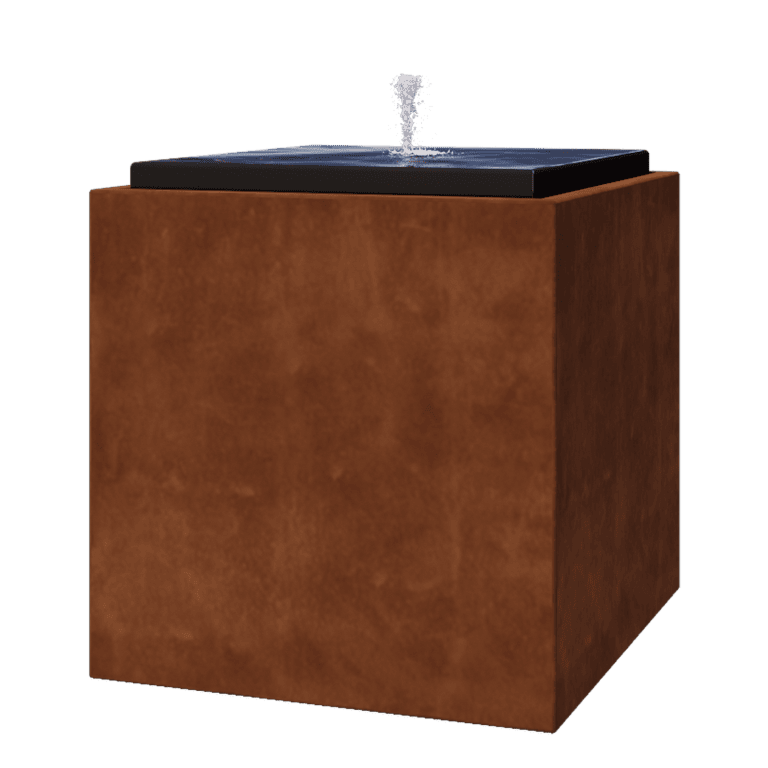 L'ornamento d'acqua è completo di pompa abbinata con cavo. La pompa all'interno della vaschetta fa salire l'acqua. L'acqua scorre poi sulla piastra interna, prima di ricadere nella vasca. È necessario cambiare l'acqua in una vasca in acciaio corten per i primi mesi, finché la ruggine non è completa. In caso di gelo, la pompa deve essere spenta. Come opzione aggiuntiva, si può optare per l'illuminazione a LED.