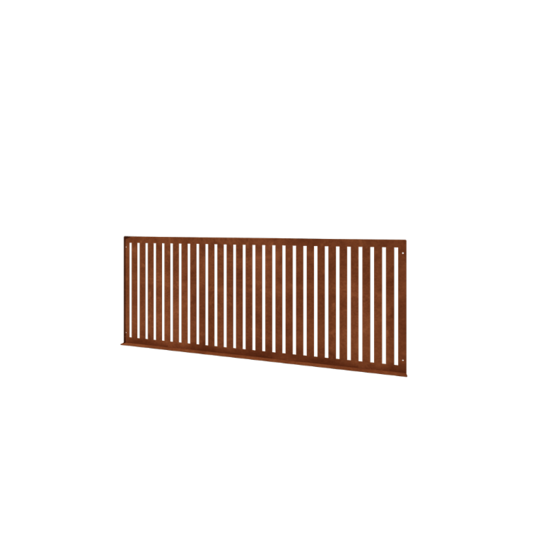 Questo pannello in acciaio corten misura 149 x 3 x 60 cm ed è realizzato con acciaio corten di alta qualità spesso 3 mm. Il prodotto viene consegnato in un unico pezzo, garantendo un’installazione immediata e semplice. Grazie alla finitura pulita, si crea una recinzione moderna che attira subito l’attenzione.
