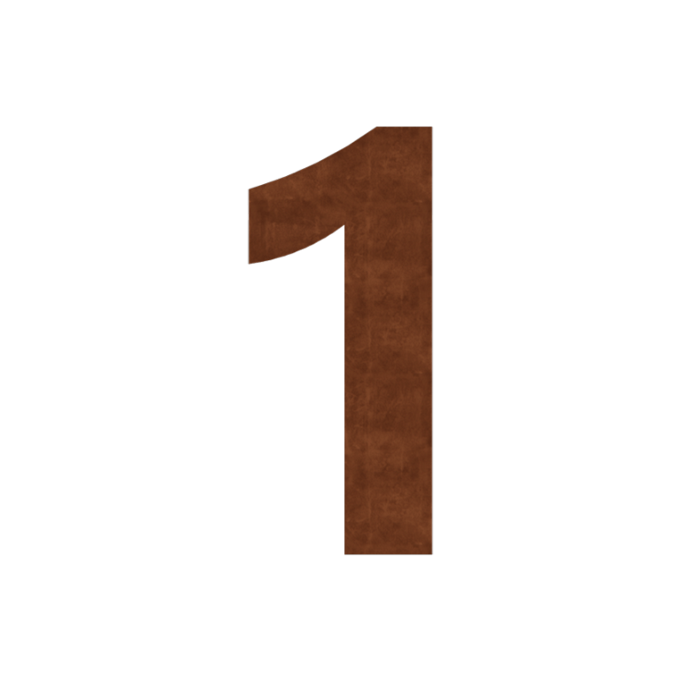 Il numero civico viene venduto nel colore grigio metallizzato senza effetto ruggine. Lo strato di ruggine marrone/arancione si forma nel giro di alcuni mesi o settimane e non è richiesto alcun trattamento specifico. Durante la formazione dello strato di ruggine, il numero civico potrebbe scolorirsi.